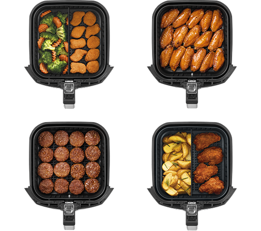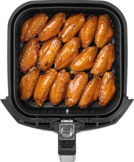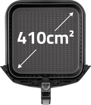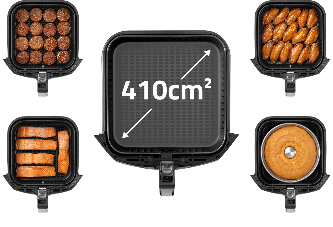 O cesto com a maior área plana do mercado* acomoda as porções com mais facilidade, evitando o empilhamento dos alimentos e permitindo um cozimento uniforme.