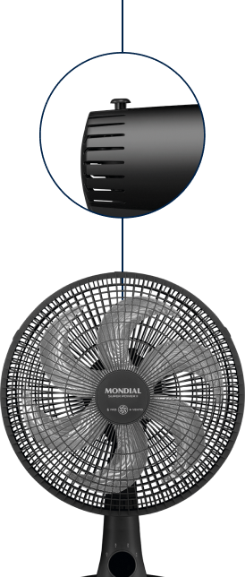 O sistema oscilante horizontal amplia o raio de alcance do vento. Você escolhe distribuir o ar no ambiente ou fixar o botão e direcionar o fluxo.