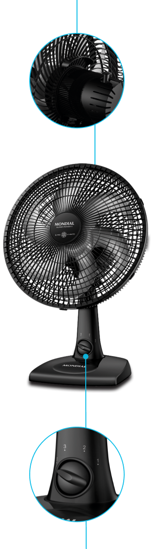 As 3 opções de velocidade permitem adequar o vento à sua necessidade: mínima, média e máxima.