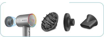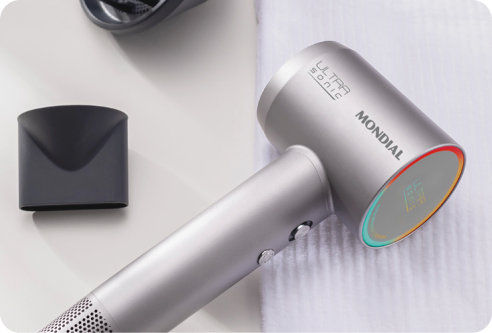 O LED inteligente muda de cor conforme o modo selecionado. As temperaturas são estáveis e seguras para todos os tipos de cabelo.